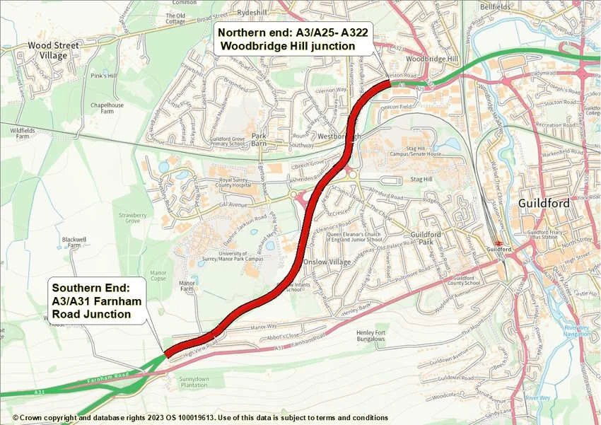 Eligibility for this grant is conditional on businesses doing at least 150 annual journeys – approximately 3 trips a week or 12 per month – and covers the A3 between the A31 Farnham junction and Woodbridge Hill junction to the A25 and A322.