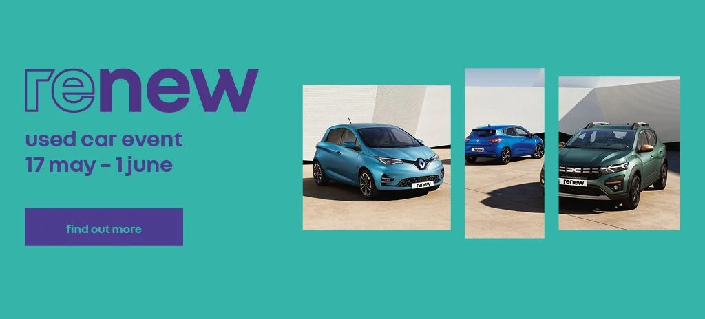 Available on all Renault/Dacia used car models. £750 deposit contribution towards your used car when financed through Mobilize Financial Services and ordered between 17/05/25–30/06/25. subject to status. 18+.