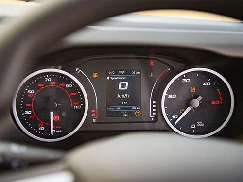 Automatic climate control, Voice assistant, Leather steering wheel, Cruise control, Heated and electric mirrors, Cornering front fog lights, Textile head rests, 2 seat passenger bench with tray, Rich dashboard, Front chrome grille.