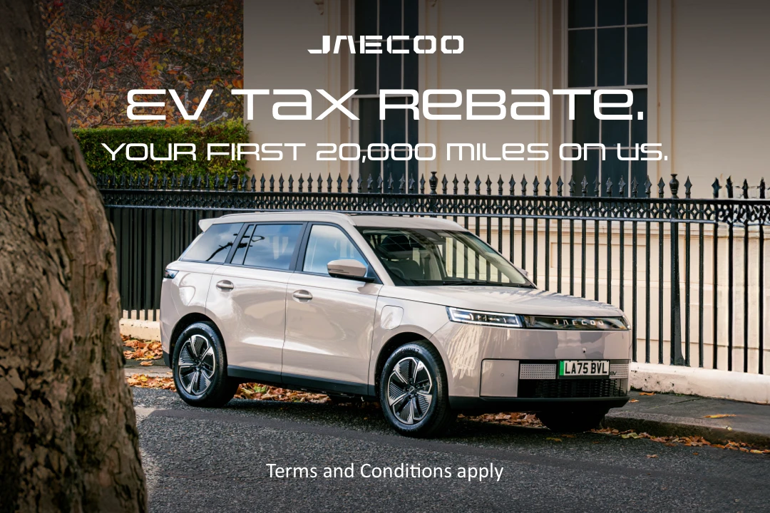 Following the new EV tax rules, JAECOO UK has introduced a new forward-thinking initiative to make the switch to electric driving more appealing. JAECOO's new Tax Rebate is to help customers, like you, get ahead of the charge. The saving is worth £600 - equivalent to 20,000 miles under the future tax!