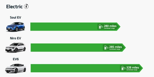 - Our electric cars boast a range of up to 328 miles (combined WLTP testing), which is more than enough for daily commutes and journeys further afield