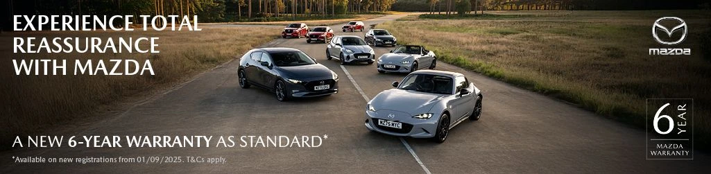 • No extra cost- warranty comes as standard with all new Mazda cars registered from 1st September 2025