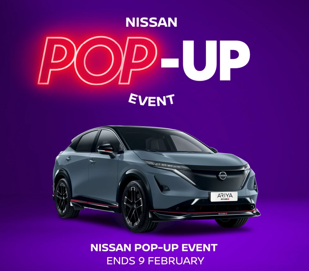 *Applies to Qashqai (all models); Juke (Except N-Sport); ARIYA (Nismo Only); and X-Trail (Except e-POWER Acenta Premium 5 seat, N-Connecta 5 Seat, N-Trek, Tekna 5 Seat Tekna+) PCP Nissan Financial Services. Subject to status. 18+. Order by 09.02.26. Registered by 31.03.26. Participating dealers only 0% APR requires 30% minimum deposit on Nissan Qashqai, X-Trail and Juke. ARIYA NISMO 0% APR requires 36 or 48 month term. T&C's apply. Images for illustration purposes.