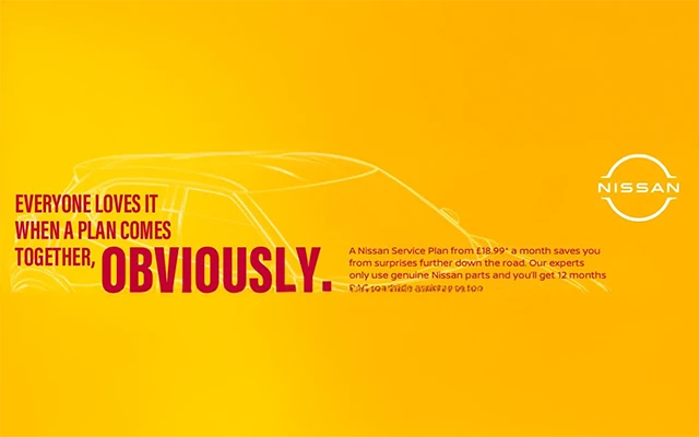 Service Plans available on Ariya, Micra, Juke, Qashqai, X-Trail, LEAF, Note, Pulsar and e-NV200 up to 10 years old and under 100,000 miles only. New cars are eligible for plans up to 4 years / 4 services and cars older than 2 months from the date of first registrations are eligible for 2 years / 2 services. Available at participating dealers only. Nissan reserves the right to amend or withdraw the offer at any time without notice. For full terms and conditions click here.