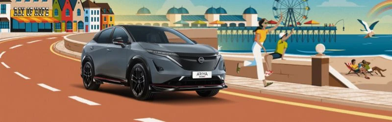 †Model shown ARIYA NISMO. Deposit contribution available across all ARIYA grades. PCP Nissan Financial Services. Subject to status. 18+. Orders from 01.07.25 to 31.07.25 at participating dealers only. To be eligible, vehicles must be registered by 30.09.25. T&Cs apply. Vehicle not to UK specification. For illustrative purposes only.