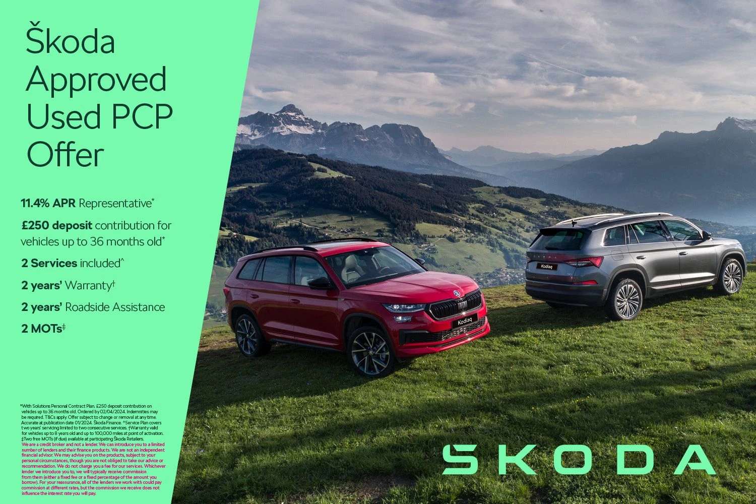 *Solutions PCP. Order by 02/04/24.^Limited to 2 consecutive services. ǂ MOT’s (if due) at participating Skoda Retailers. †Cars up to 8 years old, Indemnities may be required. T&Cs Apply. Subject to change/removal at any time. Accurate 01/24. Škoda Finance.