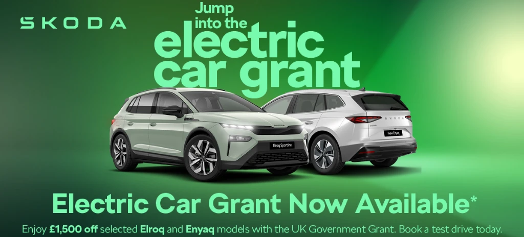 Skoda are pleased to announce a number of Škoda Elroq and Enyaq cars have met the 'Band 2' criteria of the UK Government electric car grant scheme, meaning you can enjoy a £1,500 saving on a wide range of Škoda’s award-winning cars.