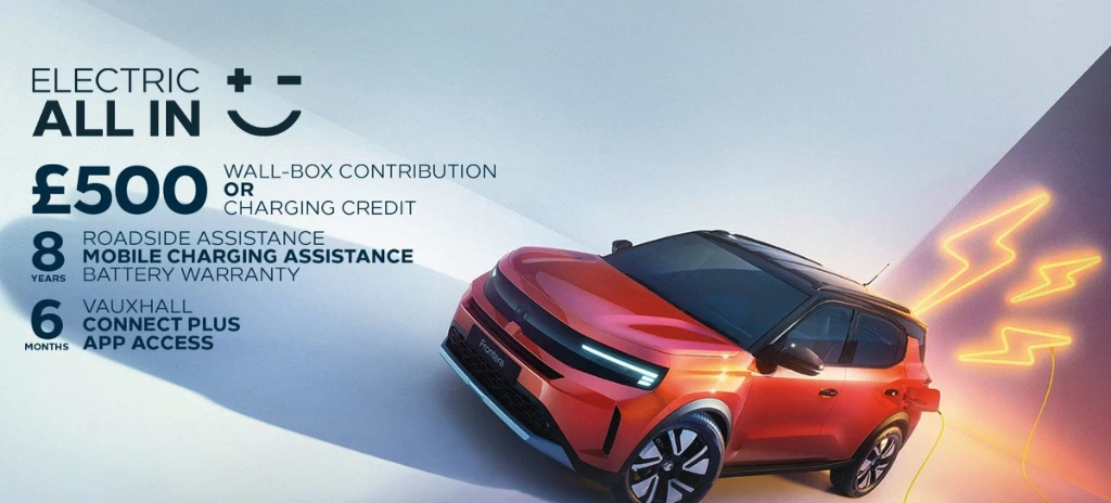 The Government Electric Car grant of £1,500 (the “Grant”) is not exclusive to Vauxhall and is provided by the UK Government. The following new Vauxhall vehicles are eligible for the Grant: Corsa Electric, Mokka Electric, Frontera Electric, Astra Electric, Grandland Electric, and Combo Life Electric.